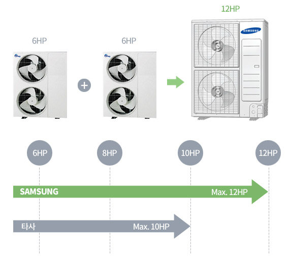 중소 공간의 단배관 시스템은 공간 활용도가 우수하고, 다수 실내기에 동시의 냉매를 전달이 용이하고, 장배관 설계가 가능 합니다.